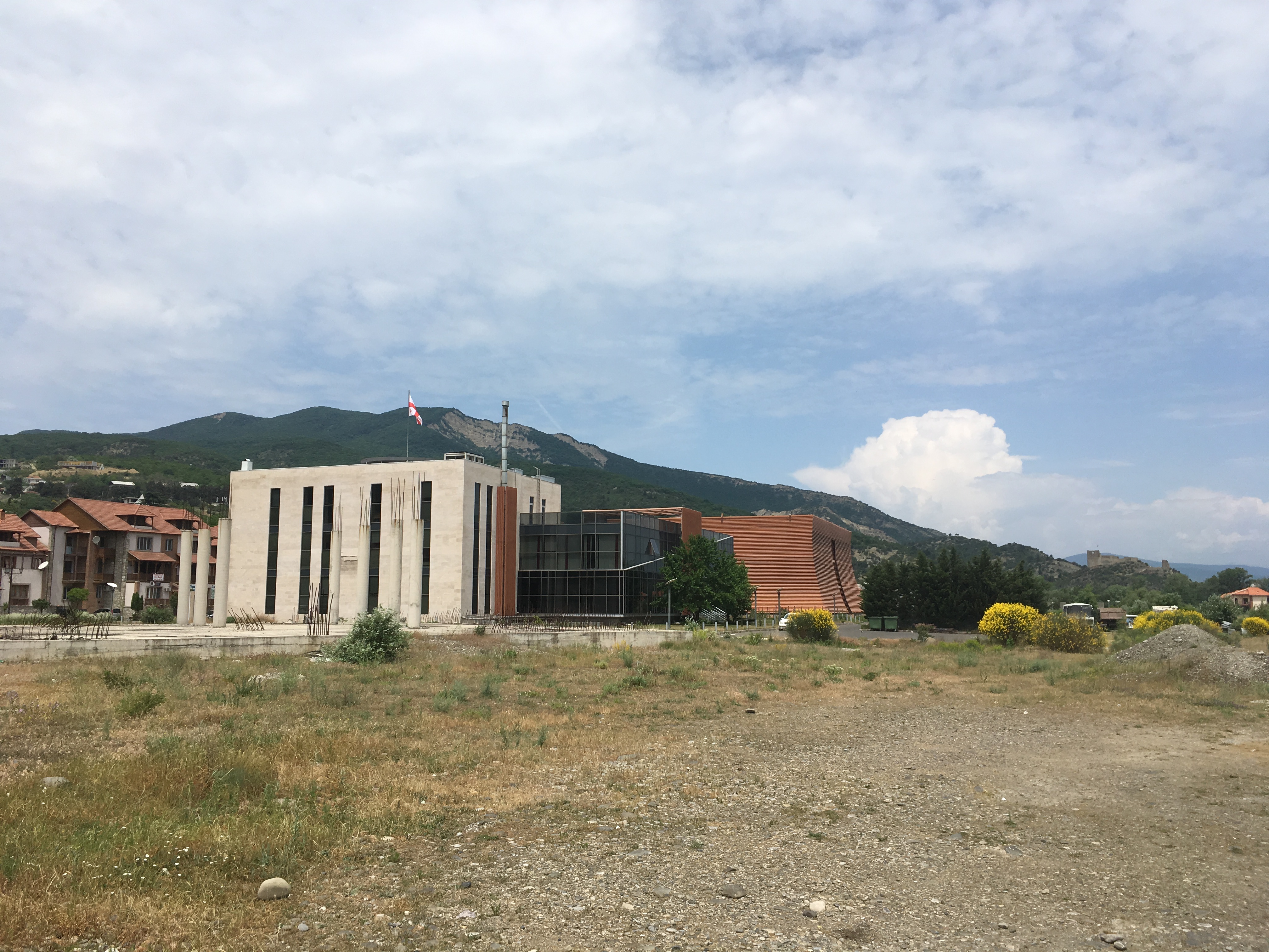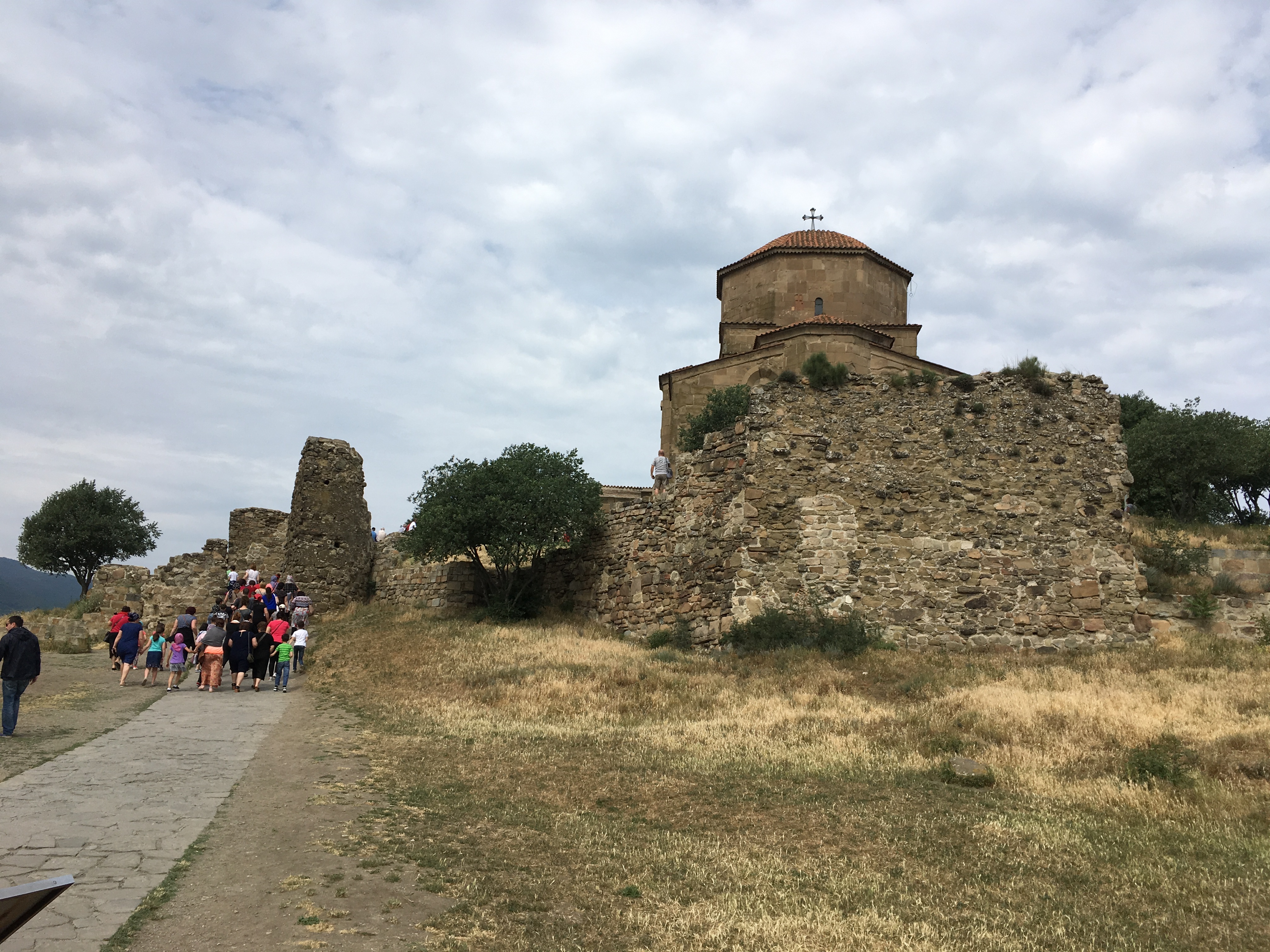 Die Stadt Mzcheta hat etwas von Rüdesheim und von Altötting, ein paar Gassen, die nur aus Souvenirständen bestehen, und in der Mitte eine wieder einmal uralte Kirche, die Kathedrale, in der die Könige der Bagratiden-Dynastie begraben liegen. Wieder Wachskerzen, Kopftücher, Fresken, mit dem iPad filmende Fernsehjournalisten. Auf dem Weg zum Essen gehen wir an gepanzerten Fahrzeugen der georgischen Armee vorbei, beklettert von Kindern, es ist Unabhängigkeitstag. Eine 2004 den Tschechen abgekaufte Panzerhaubitze vom Typ DANA hat ihr Rohr (zufällig oder absichtlich?) sehr genau auf das alte Dschwari-Kloster ausgerichtet, das hoch oben aus dem Berg zu wachsen scheint, als wollte jemand damit sagen: Wir können unsere eigene Vergangenheit mit einem Schuss vernichten.