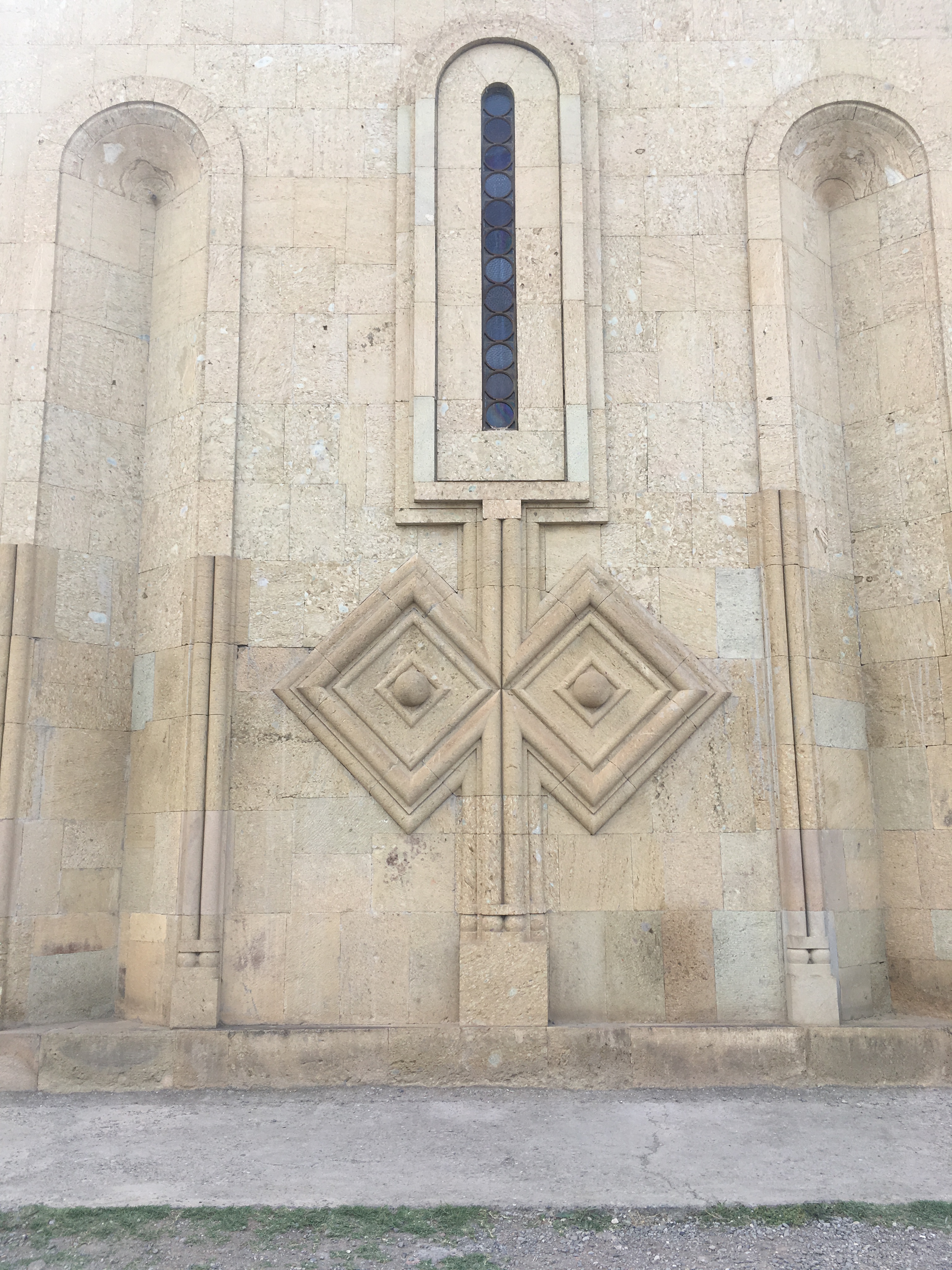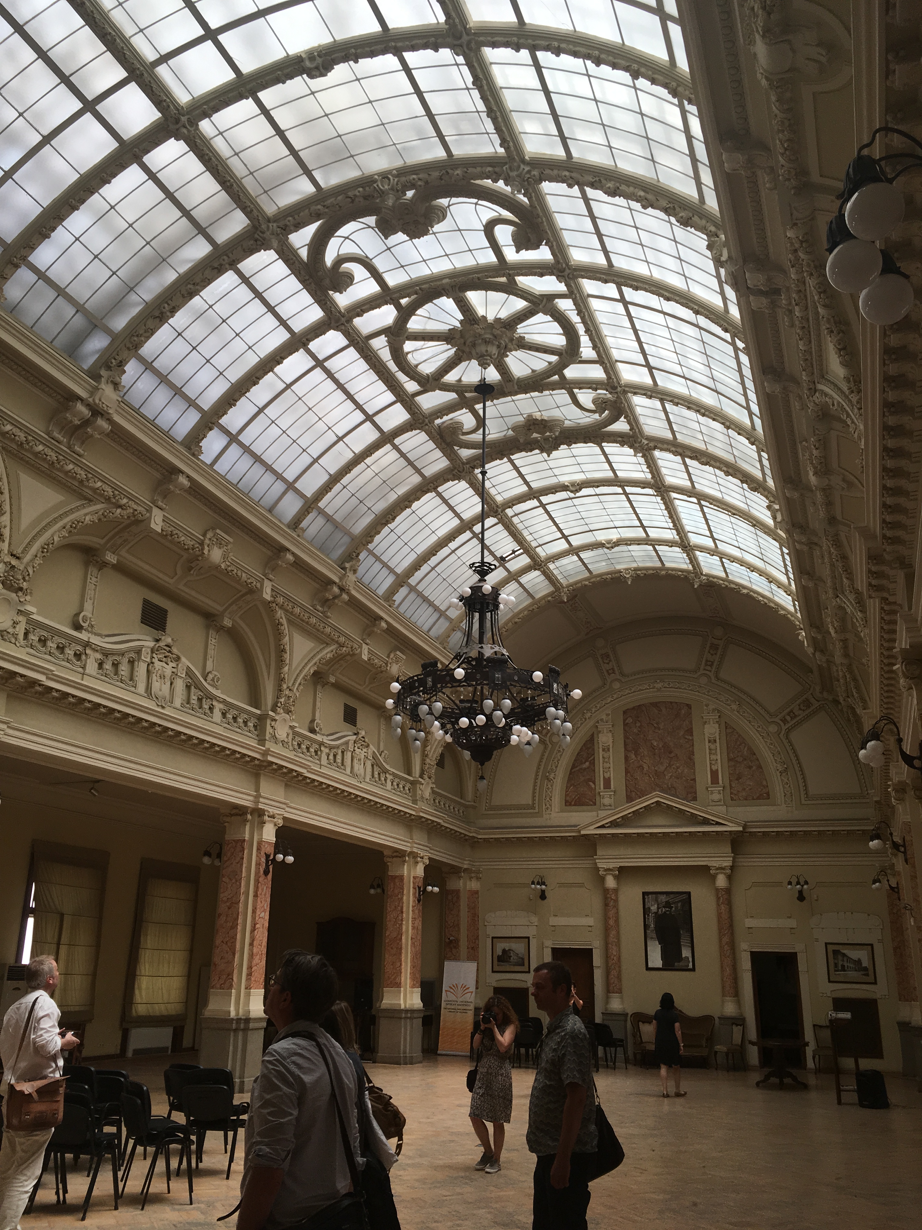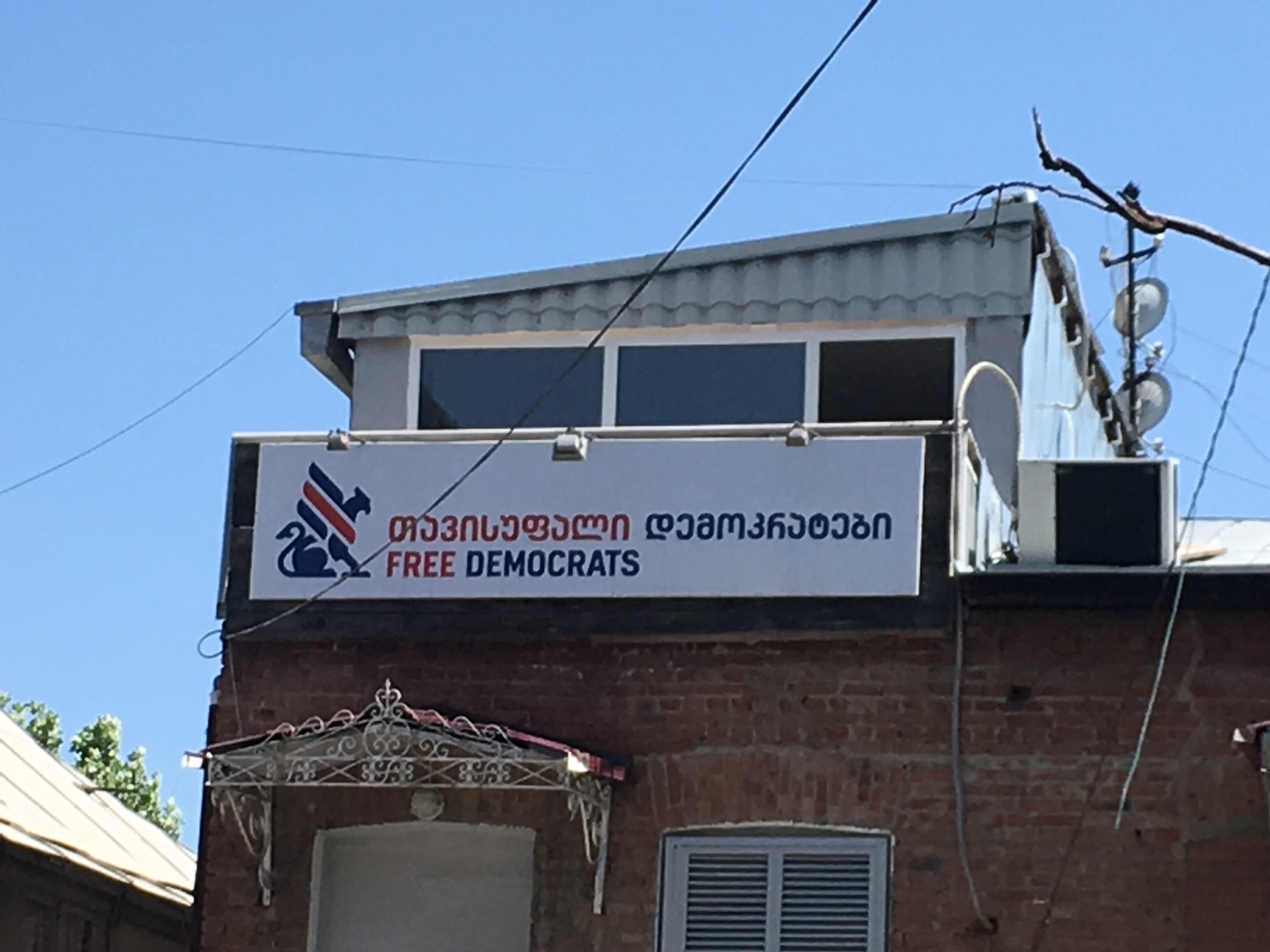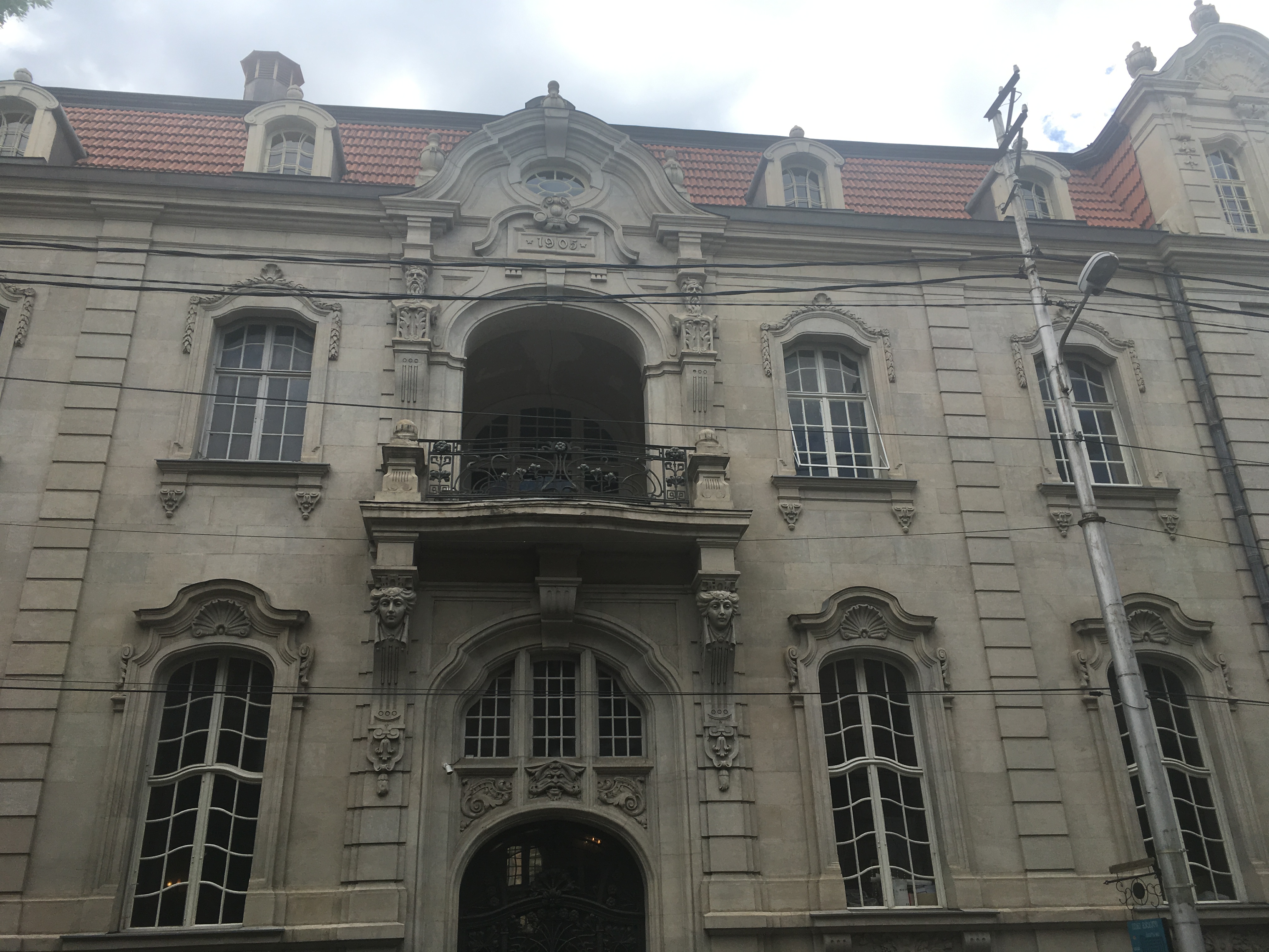 Nach dem Einführungsvortrag im Goethe-Institut (früheres Konsulat des Deutschen Reichs) sahen wir auch das alte Hauptgebäude der Nationalbibliothek (früheres Bankgebäude im österreichischen Ringstraßenstil) und konnten dort verschiedene internationale Lesesäle besichtigen. Das Magazin mit den vier Millionen Bänden georgischer Literatur ist wohl anderswo untergebracht, ich darf aber beglückt berichten, dass es in Tiflis offensichtlich mindestens ein gutes deutschsprachiges Metaphysik-Handbuch gibt. Es gibt übrigens viele politische Parallelen zu Estland (ich war 2012 mal zehn Tage in Tallinn), z.B. auch, dass man das Land als seit dem Ersten Weltkrieg unabhängig betrachtet und die Sowjetzeit als Besatzung ansieht. Wir werden am Sonnabend, wenn ich das Programm recht erinnere, die Feierlichkeiten zum 100. Unabhängigkeitstag erleben. Eine recht rigide Sprachpolitik erinnert an Québec: Ähnlich, wie dort keine englischsprachige Inschrift ohne eine deutlich größere französischsprachige stehen darf, müssen hier öffentliche Schilder und Logos immer auch in georgischen Buchstaben gehalten sein, weswegen H&M hier ein riesiges georgisches Logo hat; das uns bekannte findet sich deutlich kleiner darunter.