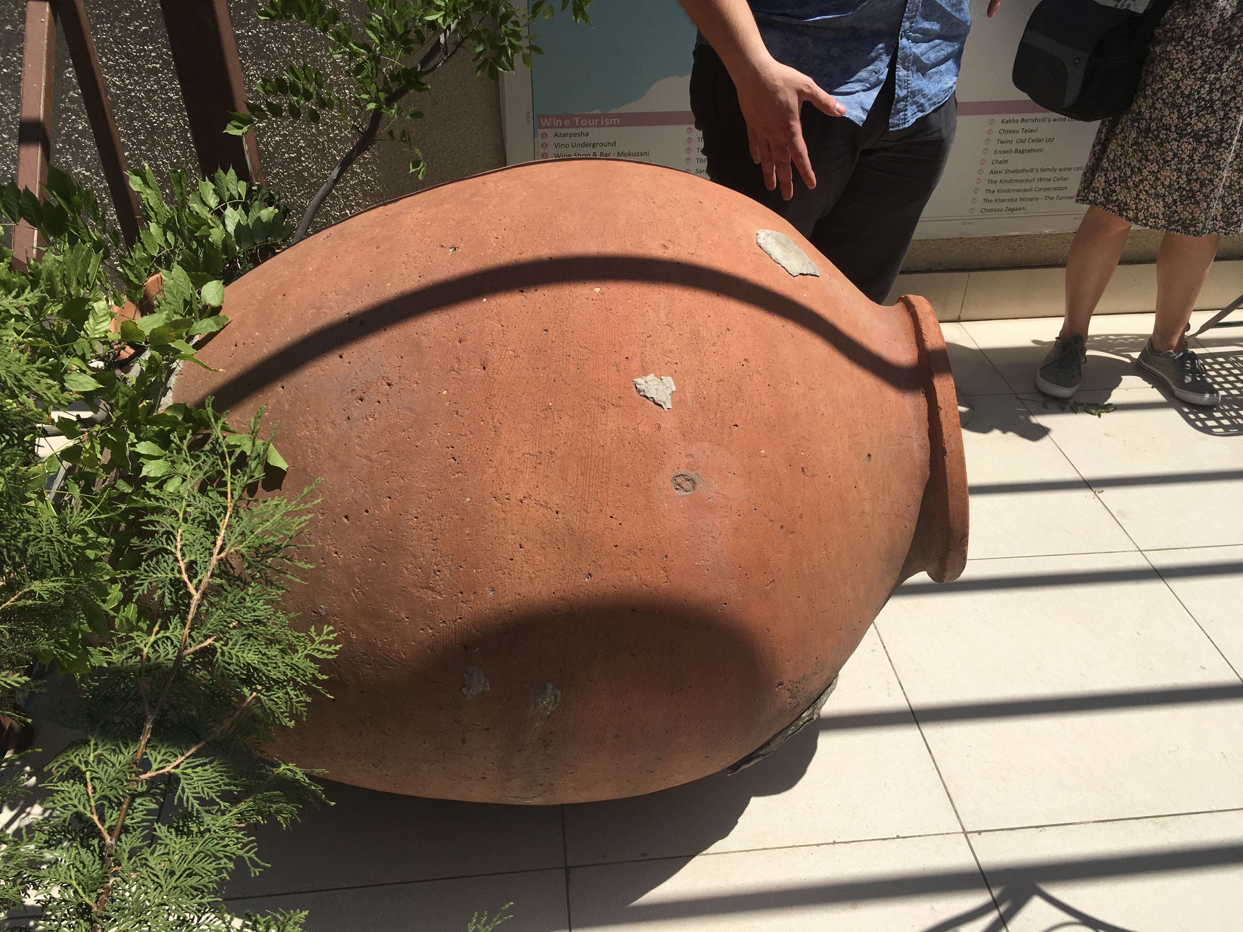 Wie geht es weiter? In Georgien stellt man seit angeblich 8000 Jahren Wein auf traditionelle Weise her, indem man Most in eine riesige Amphore tut, diese eingräbt und vergisst. (Wie beim Brot ist ein gewisses Grundmuster erkennbar: In Georgien fängt man anscheinend viele Projekte an, indem man erst einmal eine Amphore eingräbt.) Wer die Amphoren wiederfindet und wann, habe ich nicht verstanden, aber offensichtlich passiert es relativ häufig, denn Wein ist hier allgegenwärtig. Uns steht insofern noch eine Weinprobe bevor.