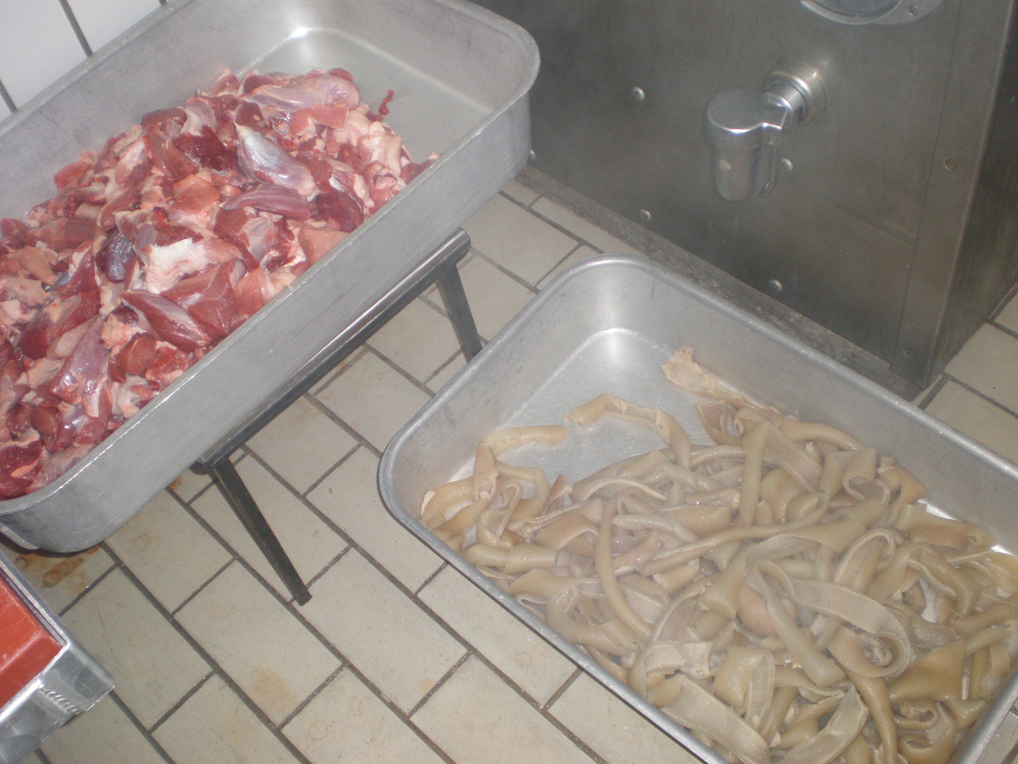 Ohne Schlachtung vorher. Dafür konnten bei dem Tier die meisten Teile einzeln verwendet werden und nur weniges kam in die Wurst.