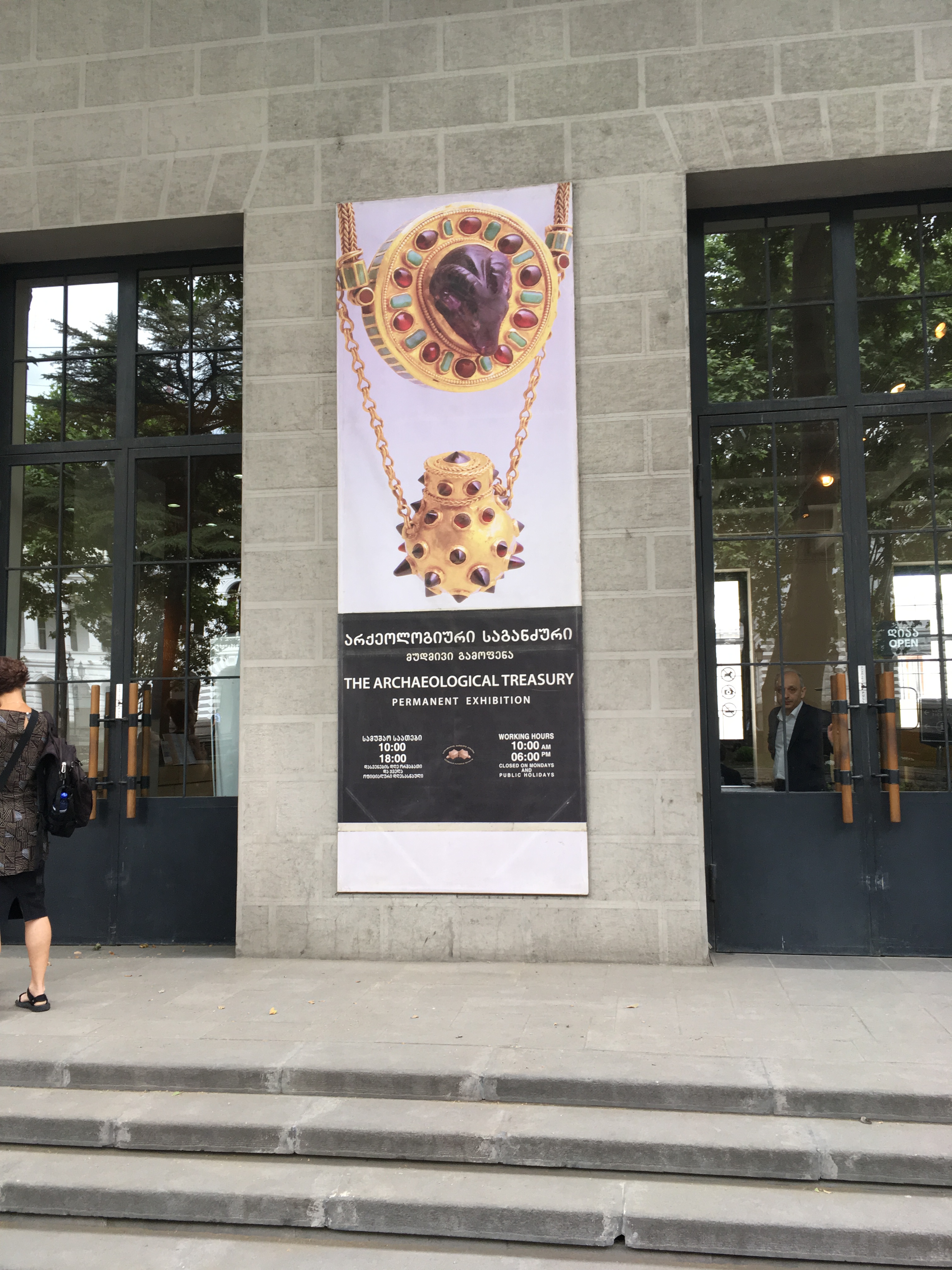 Ansonsten verging der Tag mit einem Besuch im Nationalmuseum, wo wir steinzeitliche Funde aus Dmanisi (der älteste Fund von Homininen außerhalb Afrikas) und beeindruckenden Schmuck aus frühen georgischen Kulturen sehen konnten. Die ebenfalls versprochene Ausstellung zu Georgien unter sowjetischer Herrschaft bekamen wir nur kurz und nach längerer ratloser Wartezeit zu sehen, da sie gerade noch unter Hochdruck für den bevorstehenden Unabhängigkeitstag überarbeitet und umgebaut wurde; der angekündigte Besuch in der Nationalgalerie entfiel ganz.